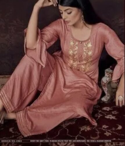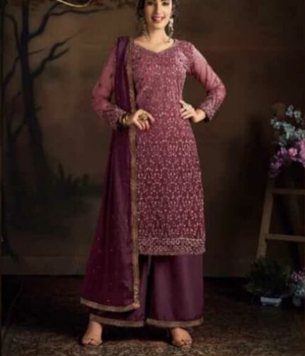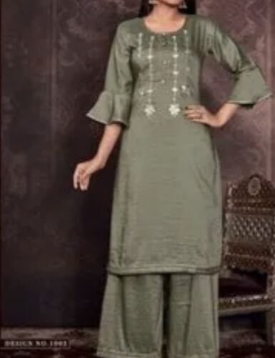 Semi-Stitched Kurti Palazzo Set with Zari and Sequin Embroidery