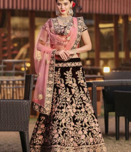 Semi-Stitched Velvet Party Wear Lehenga