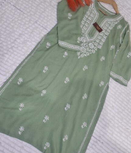Elegant Long Lucknowi Chikankari Embroidery Kurti for Women