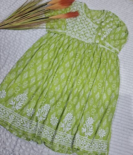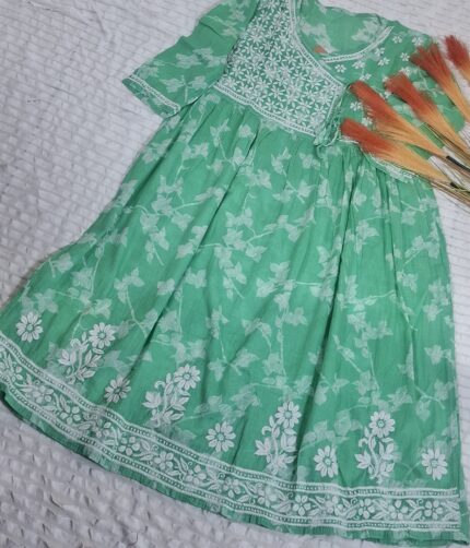 Elegant Short Angrakha Style Lucknow Chikankari Kurti for Women – Handcrafted Embroidered Cotton Kurta