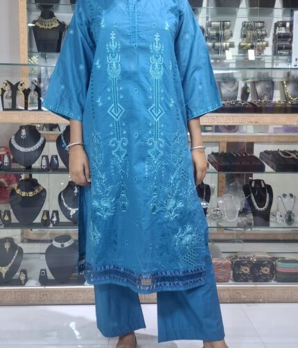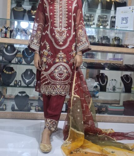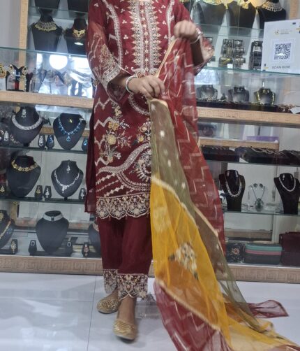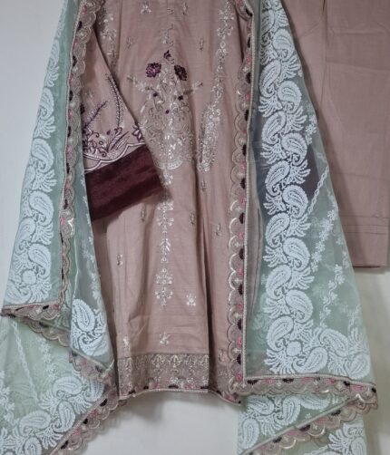 Pakistani Lawn Embroidered Suit with Organza Cutwork Dupatta