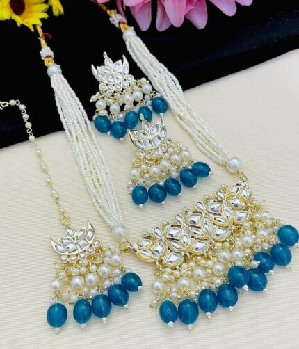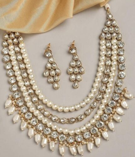 Pearl Haar Set Studded with American Diamonds for Women