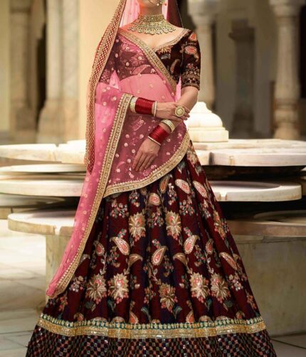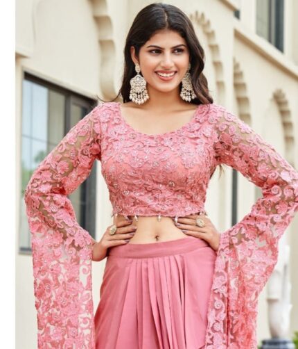 Festive Indo-Western Lehenga with Lace Choli and Exaggerated Sleeves for Women & Girls
