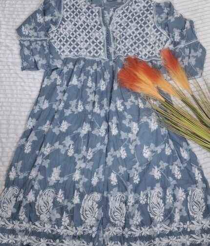 Long Gown Style Embroidery Chikankari Kurti – Long Kurti
