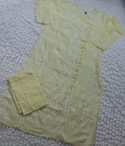 Long Lucknowi Chikankari Georgette Kurti with Inner