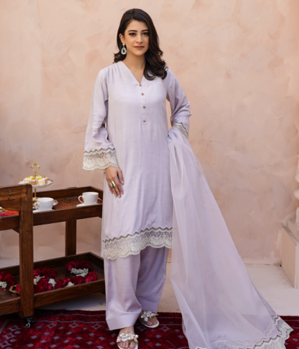 Embroidered Raw Silk with Farshi Shalwar with Organza Embroidered Bordered Dupatta