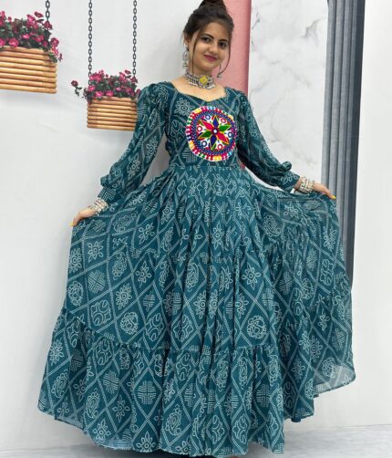 Bandhej Print Tiered Chiffon Maxi with Gamathi Patchwork