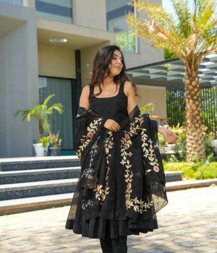 Premium Indo-Western Tiered Gown with Cris Cross Neckline