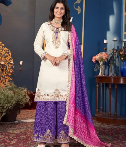 Kurti with Beautiful Bandhej Palazzo and Dupatta