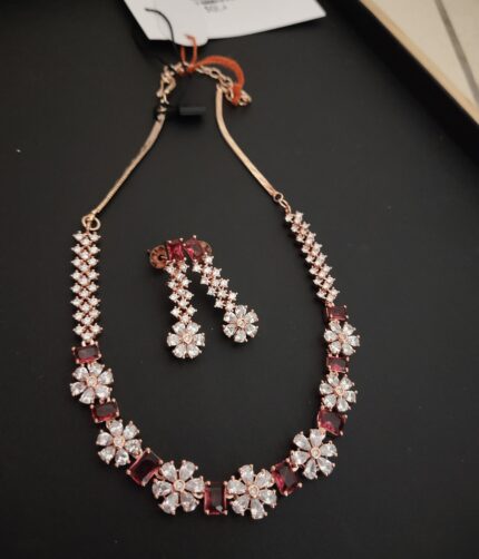 American Diamond Intricate Leaf Design Choker Set for Women