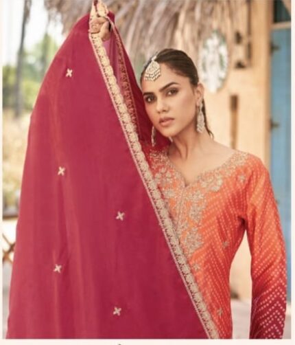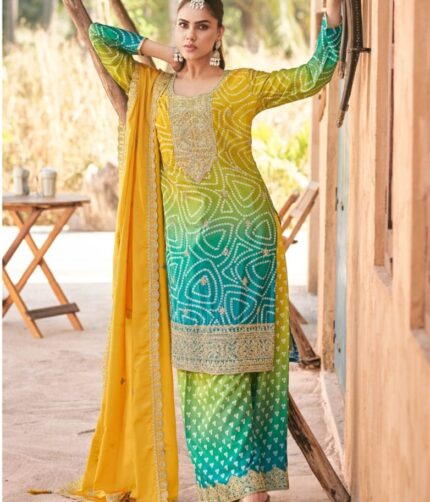 Premium Embellished Bandhej Kurti Palazzo Set with Dupatta for Women & Girls