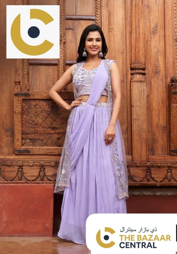 Festive Indo-Western Jacket & Lehenga Saree with Zari Embroidery & Embellishments for Women & Girls