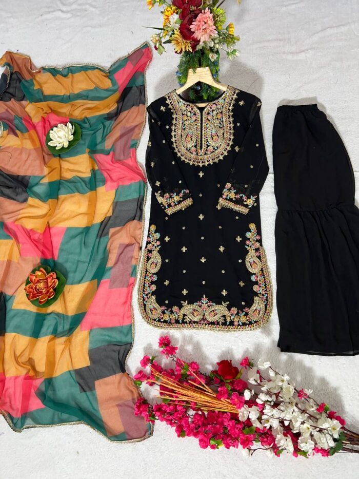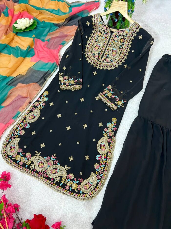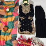 Georgette Partywear Sharara with Sequin and Zari Embroidery