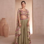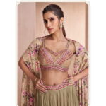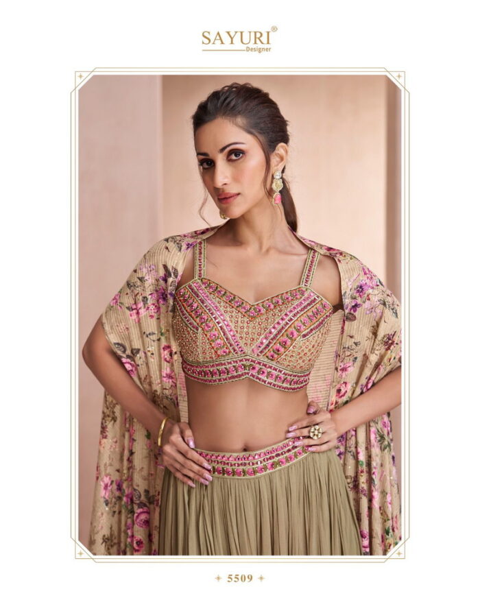 Crop top comes embellished with American diamonds and intricate zari embroidery work